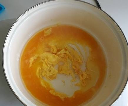 4.雞蛋打散,放少許鹽,電磁爐900火力,鍋中放少許油,放入雞蛋液,炒熟