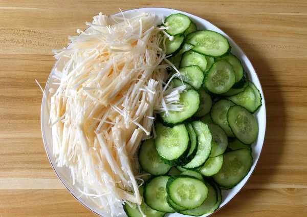 黃瓜金針菇湯。準備金針菇、香菇、鮑魚菇、黃瓜,將這些食材全部洗幹凈。黃瓜切成厚片,鮑魚菇和香菇分別切成條狀,接著將所有的食材放入鍋中,加入水煮開,最後放入香菜或者蔥末再煮一會,最後出鍋時加入適量的調味料即可。這些食材本身就沒有什麼熱量,菌類食材還可以讓人產生強烈的飽腹感,營養價值也很高,對減肥有很大的幫助。