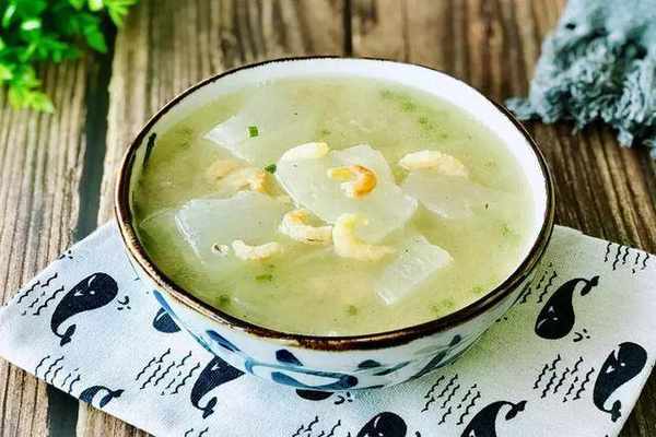 海米冬瓜湯。海米用清水沖洗後泡發,泡發的水不能倒掉。冬瓜去皮去籽然後切片備用。然後鍋中放入油燒熱,爆香薑蔥末,放入海米炒到稍微變色後放入冬瓜片,翻炒均勻,然後放入泡發海米的水,蓋上鍋蓋煮至冬瓜片變透明,然後出鍋時放入稍許鹽調味。冬瓜可以幫助去除浮腫,減少體內脂肪堆積,對減肥也有很大的幫助。