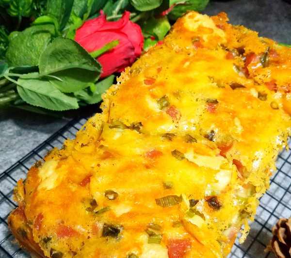 今天送完孩子上學,和老公一起陪老媽去植物園賞花,聽說植物園的月季花展已經開始瞭,剛吃完飯就沒帶吃的,開車不到20分鐘就到瞭植物園門口,除瞭停車費5塊錢以外,植物園對市民全免費開放,一進大門右轉就是月季園,大片的月季開的正艷,一朵朵嬌艷欲滴,裡面已經有很多的人都在賞花拍照,品種很多,中間有分很多的小道供遊客通過和拍照,不用擔心出現踩踏鮮花的事件,整整逛瞭一個上午,真的很餓,後悔沒帶吃的,回傢的路上和老公就開始商量,下午在傢做啥好吃的,一周沒做吐司面包,今天就特別想吃,老公又說想吃披薩,那就換個小花樣來做吐司,真的是做法簡單,成品卻咸香無敵。好瞭,下面就給大傢介紹一下做法,真的是沒有一點技術含量,手殘黨也沒關系,隻要你有烤箱就能做出來。