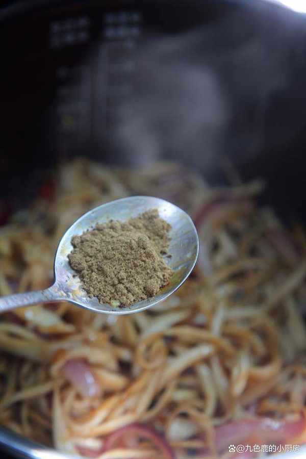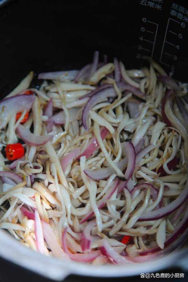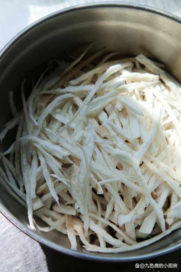 3、撈出來擠幹水分備用。