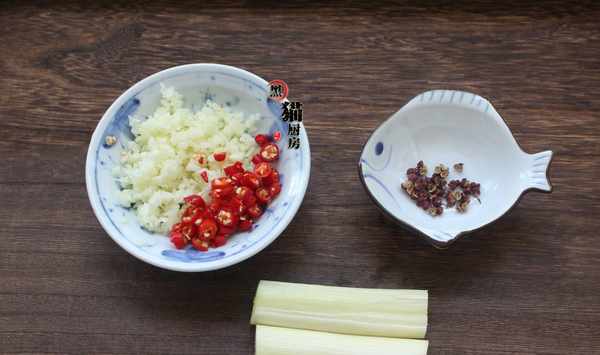 材料:蒜頭半個,小米辣3-5個,花椒十幾粒,蔥白兩段,油、生抽、蠔油、鹽、辣椒油、陳醋、香油各適量。