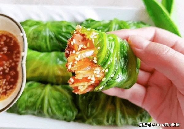 最後取適量蔬菜放在生菜上,卷起來就做好瞭,吃的時候蘸汁。