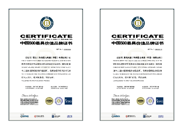 2022年《中國500最具價值品牌》“雪花”品牌價值評估為2117.28億元人民幣,增幅為10.2%。