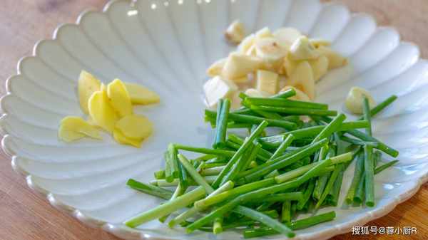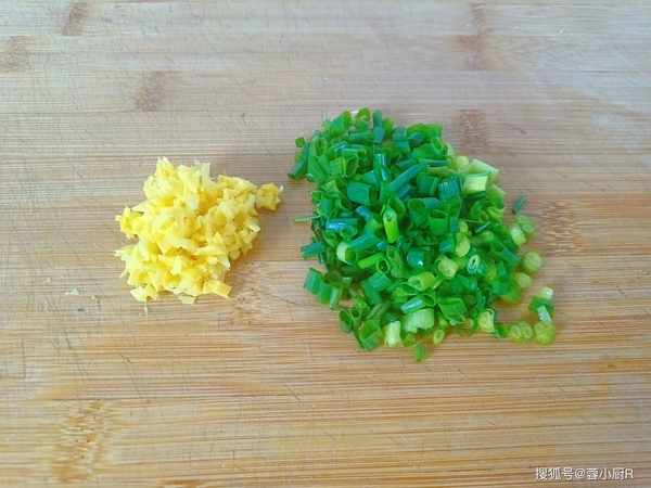 3、1把小蔥,洗凈後切成蔥花,隻要蔥綠部分,蔥白就不要瞭。生薑一小塊兒,切成薑末。