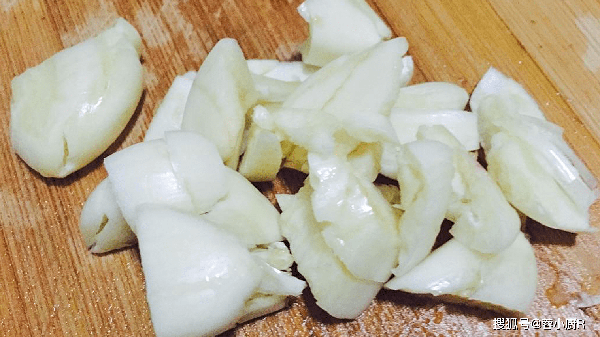 9、大蒜半頭,剝皮後剁成蒜蓉備用。