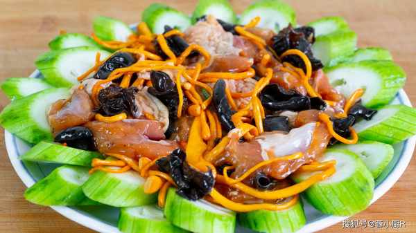 食材清單:絲瓜1條、雞腿2個、蟲草菇1小把、蔥花、生薑
