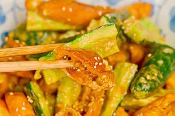 最後撒上一點白芝麻點綴,這一盤爽口酥脆的黃瓜拌油條就可以上桌啦!