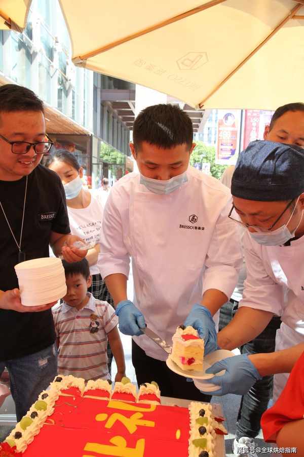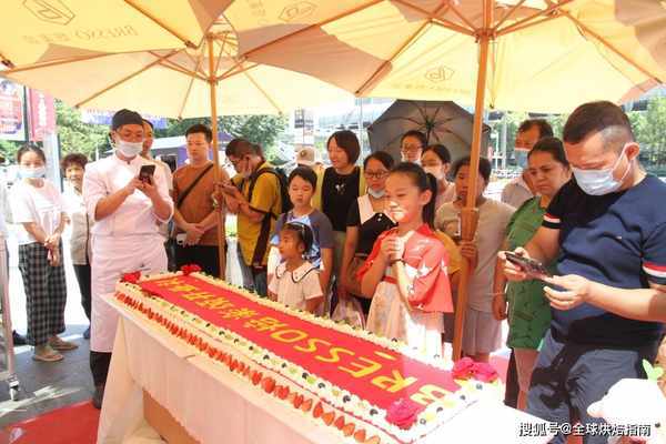 店裡特別在開業前3天準備了2米長的巨型蛋糕,純動物忌廉和新鮮芒果果肉,一層忌廉一層厚厚果肉,供所有人免費品嘗,奶香味飄的方圓幾裏的人都圍了過來,甚至有人把一日三餐都想好了。