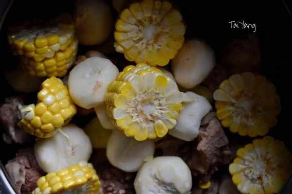 接下來就是將玉米剁塊,放入砂煲中。喜歡吃玉米的可以下多一條,玉米可以吸收湯汁的清香,吃起來甜口淳香,家裡有小朋友的肯定會很喜歡吃~