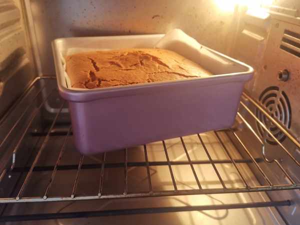 第九步:烤箱200度預熱5分鐘,改成150度上下火烤制40分鐘,蛋糕熟透。