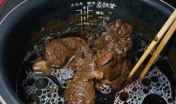 6.第二天早上,打開飯煲蓋,香氣撲鼻,而且吸足瞭湯汁的牛肉,味道非常濃鬱。