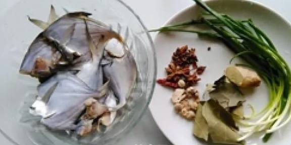 小鯧魚500克蔥適量薑1塊料酒1大勺生抽2大勺老抽1大勺白糖2大勺鹽少許八角3隻香葉5片幹辣椒1隻花椒10顆白寇5顆