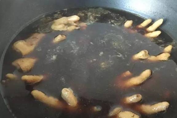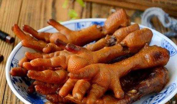 雞爪8個鹽5克生薑3片料酒2湯匙五香粉10克冰糖25克八角1個香葉2片桂皮1塊花椒15粒老抽2湯匙生抽3湯匙