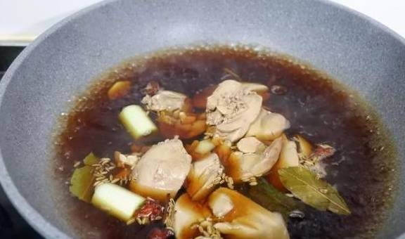 鴨肝500克料酒15克蔥3段薑3片香葉2片八角2個桂皮1小塊小茴香2克草果1個生抽2湯匙老抽1勺白糖1勺鹽適量