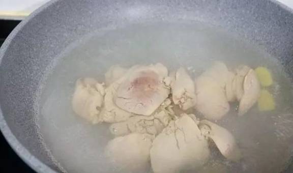 3.鍋中註入水,將鴨肝冷水下鍋。