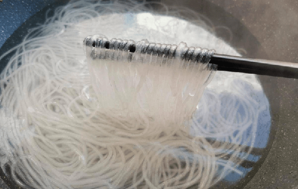 ②綠豆粉焯水時一定要掌握好時間,過度焯煮會使其變得非常粘糊,制品口感很差。