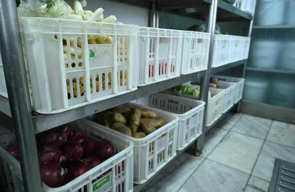 常溫儲存的原材料也都有專門的盛放容器,放在和地面有一定距離的儲物架上。