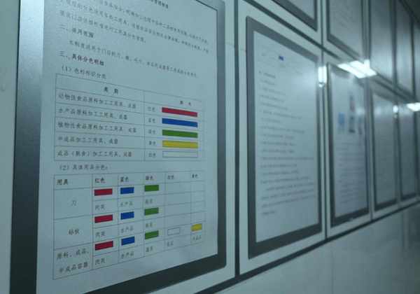 據統計,細菌性食物中毒是餐飲環節各類食物中毒中最為常見的中毒類型,主要由於食品加工制作過程中操作不規范,加工工具和容器交叉使用、生熟交叉污染引起。為瞭防止菜品在加工過程中交叉污染,酒店還實行色標管理,刀、墩、毛巾、視頻用盛器等工具都都不同的顏色標識,各類器具用途一目瞭然。