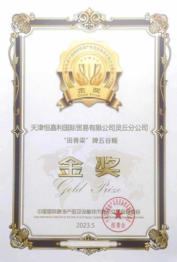 5月13日,以“科技賦能、品牌引領、智造美好”為主題的第十九屆中國國際糧油產品及設備技術展示交易會(中國國際糧油博覽會)在濟南市山東國際會展中心開幕。靈丘縣田脊梁種養專業合作社受邀參展,旗下產品天津恒嘉利國際貿易有限公司靈丘分公司“田脊梁”牌五谷糊榮獲金獎。