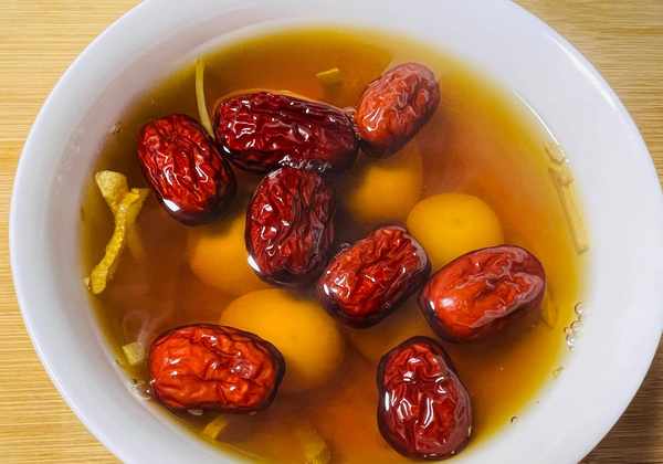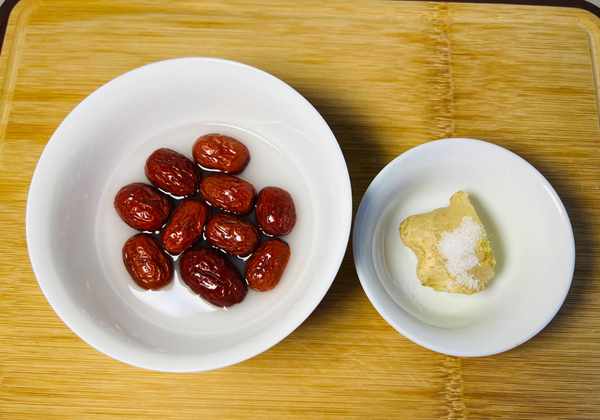 所需食材:鵪鶉蛋若幹個、紅棗10顆、生薑1小塊、紅糖。