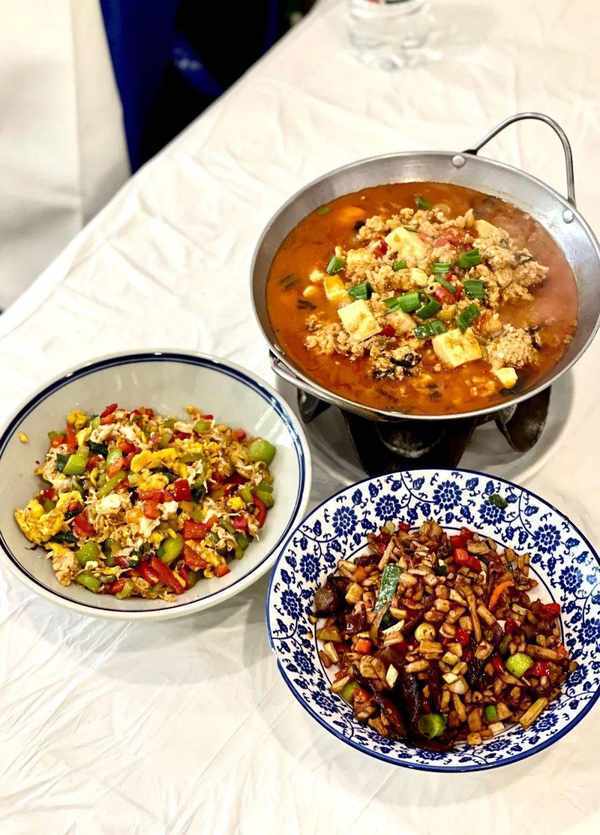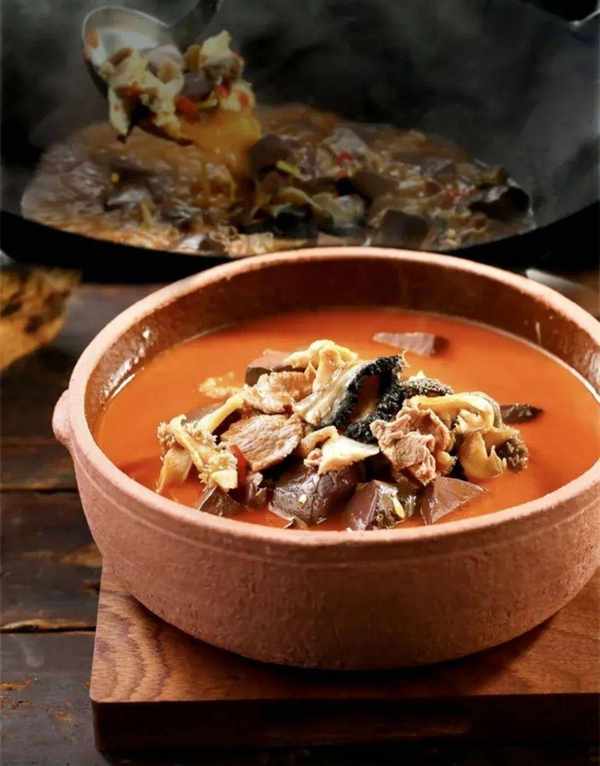 因為老板來自湖南婁底市,這裡有一些在北京湘菜館不常見的菜式。比如這道婁底市新化縣的名菜“新化三合湯”用牛肉、牛肚、牛血(因采購的問題已經用鴨血替換)煮湯,其中加瞭山胡椒油和米醋兩個特別佐料調味,再加薑去腥,口味濃鬱,酸辣開胃在口中久久不散去;“生炒肥腸”完全就是湖南本地做法,全生的大腸清理幹凈和黃貢椒大火爆炒,吃起來Q彈軟嫩;還有來自常德的代表菜“口味魚雜煲”簡直就讓魚雜愛好者味覺爆棚,魚籽和魚泡在鍋裡咕咚咕咚翻滾,溫潤鮮辣,魚籽軟爛,魚泡不腥,配上白豆腐加入米飯裡伴著吃簡直一掃而光。