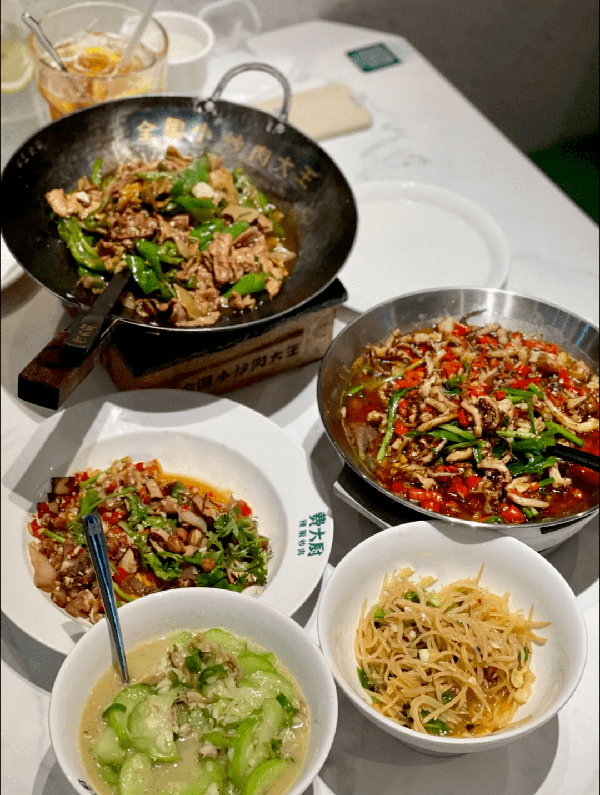 看店名就知道主打辣椒炒肉,一道聽似再普通不過的傢常菜能讓顧客爭相品嘗不是一件簡單的事。費大廚的核心就是廚師,招牌辣椒炒肉講求大廚現炒,土豬肉細嫩多汁,青螺絲椒鮮辣開胃,兔耳菌清脆爽口,最有記憶點的便是帶鍋上桌,讓食客們感受傢常菜最重要的鍋氣——“現炒現吃”,讓平凡的辣椒炒肉有瞭靈魂,香氣四溢。