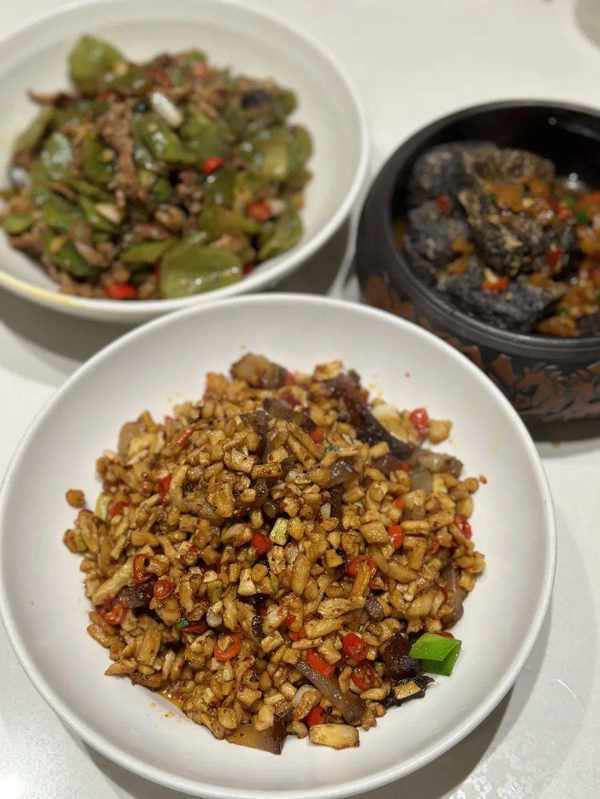 他傢的招牌臭鱖魚也是“臭名”昭著,口感豐富,聞著臭吃著香,辣味適中,其他諸如砂鍋豆角絲、小炒黃牛肉、酸蘿卜雞胗這些比較典型的湖南傢常菜也深受好評,這絕對是你來過還會一直想再來的湖南味小館。