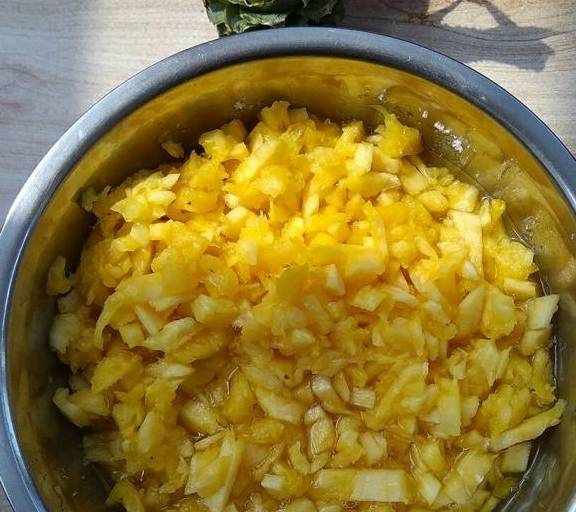 第2步、菠蘿切碎,加糖醃制20分鐘。