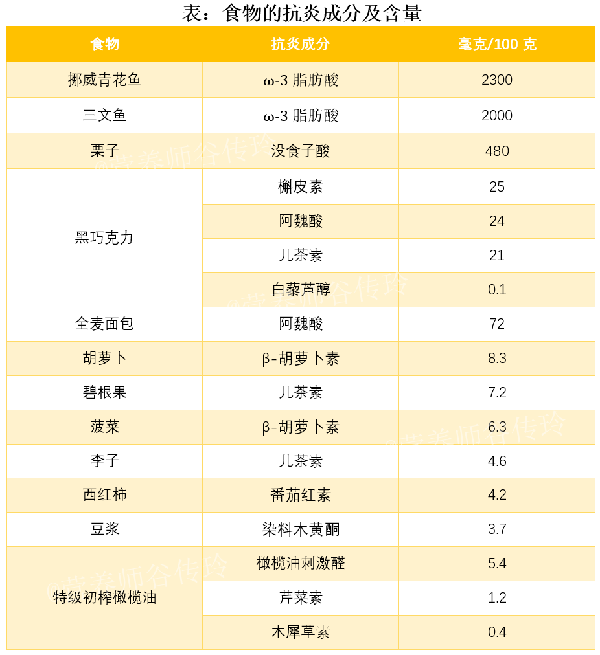 它富含的抗炎成分,其它食物中也有,多種食物搭配著吃,一樣可以起到抗炎效果,不用揪著一種食物狠吃哈。