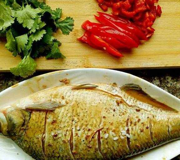 第1步、準備食材:用刀在魚身上斜刮幾道小口,依次抹上面粉(少許)、醬油、鹽、耗油、米酒、香油,塗抹均勻,魚肚子也要記得抹上,再往魚肚子塞幾片生薑去腥。(自傢釀制的米酒會比較香,用料酒代替米酒也是可以的。)醃制半個小時(時間也可自己控制)