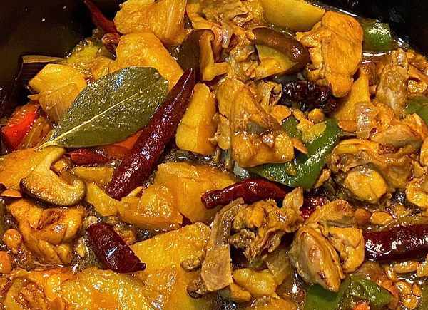 5. 把土豆、香菇、甜椒放入鍋中(甜椒也可以燉好之後放,個人比較喜歡先放)加入少許雞精調味
