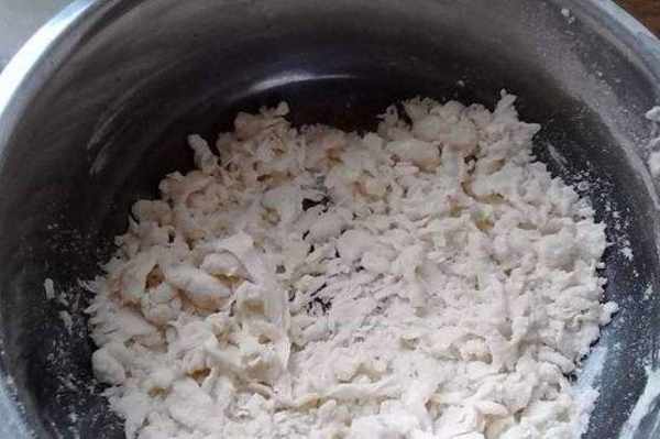 在一個幹凈的碗裡倒入適量的面粉,然後再加入少許食鹽。攪拌均勻之後就要開始倒水瞭。在倒水的時候要註意,水流一定要細一點,而且,在倒水的過程當中要不停地攪拌面粉,直到將面粉攪拌成大小均勻的小疙瘩。