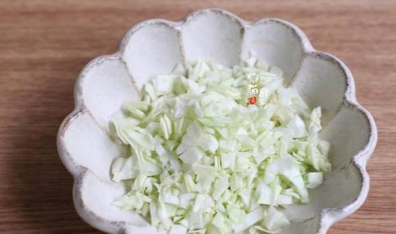 3.包菜切成絲後,再切成小碎粒。包菜是蔬菜,減脂餐裡最不能缺少的就是蔬菜,可以把蔬菜和主食混合搭配在一起,做成拌飯或者炒飯的形式。