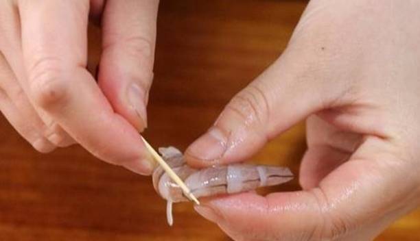 做韭菜小蒸包的食材上比較的簡單,隻需要餃子皮、蝦、韭菜和一些調味料。蝦買新鮮的,然後回傢清洗幹凈,然後再蝦的第三節把蝦線挑出來,再把蝦殼剝掉。