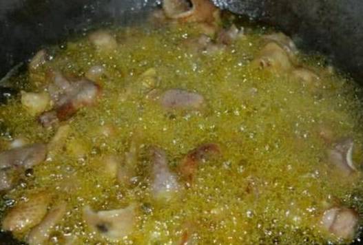 把鍋燒熱,倒入比較多的油,那麼油熱之後放入醃好的雞塊來進行炸制,炸至雞塊表面金黃就可以關火撈出來,控油備用瞭。