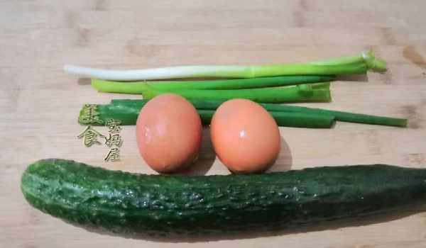 【準備食材】1根黃瓜,2個雞蛋,適量蝦皮,少許蔥薑和食鹽