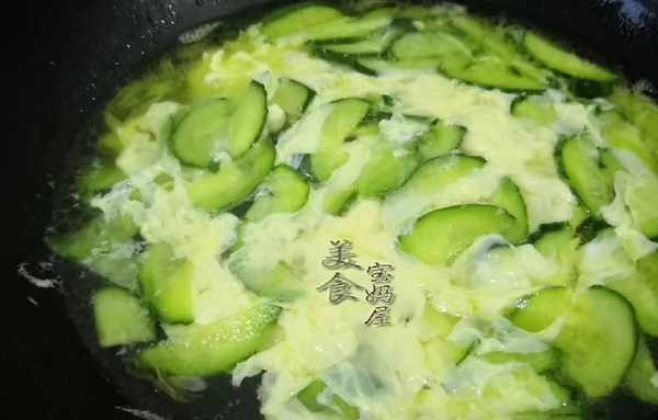 3、開火,鍋熱後加入少許食用油,油熱後放入切好的蔥白和薑末爆香,然後放入切好的黃瓜翻炒一下,再加入蝦皮繼續翻炒均勻後,加入適量開水煮2分鐘左右,再加入少許食鹽調味;最後再在鍋中淋入攪拌好的蛋液,等蛋液凝固,攪拌均勻再加入少許雞精,放入切好的蔥葉,即可出鍋裝入碗中,清淡美味的黃瓜蛋花湯就做好瞭。