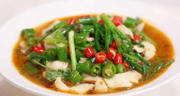食材:鱸魚500克、酸菜40克、杭椒40克、小米椒30克、仔薑30克、蒜6瓣、小蔥4根、香菜2根、雞蛋清1個