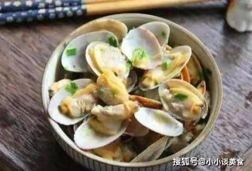 5、殼口逐漸張開,加入料酒和少許鹽。