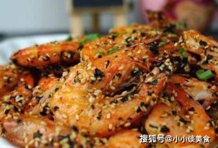原料:鮮蝦500克;一大片海藻;芝麻少許;蔥;淀粉;鹽;油;