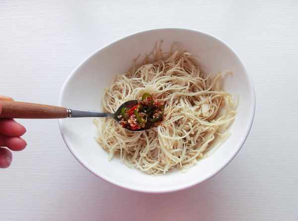 6.調入料汁拌勻即可食用。