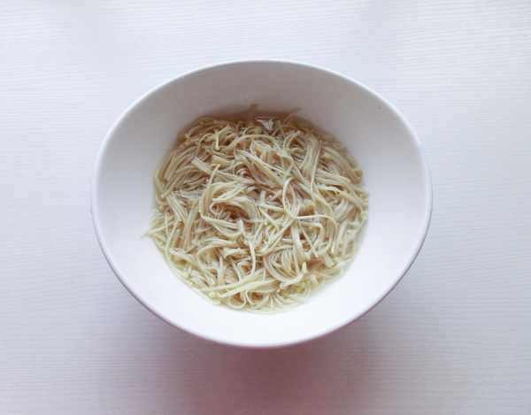 3.粉皮下開水鍋焯透撈出,放涼開水中投涼。