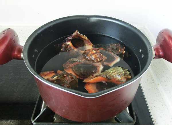 做法:1. 新鮮的海螺洗幹凈,鍋內加水放入海螺,水沒過海螺即可,根據大小不同開火煮15分鐘左右。