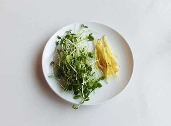 2.香椿苗去根洗凈,薑切絲。