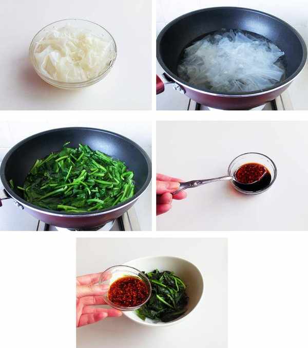 材料:粉皮100克,菠菜400克。