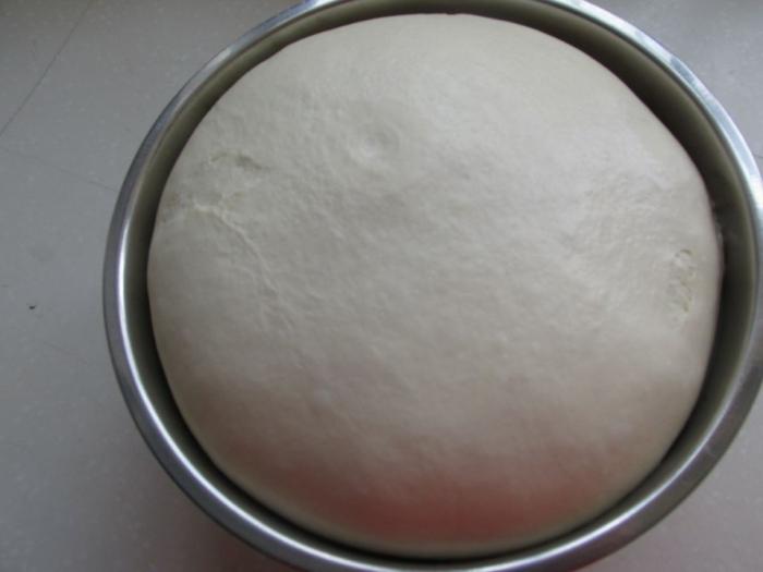 第二步:大約一小時就可以發酵成一盆,用手指按一下,不回縮就是發酵正合適。