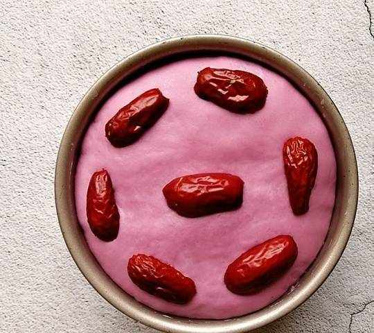 紫薯210g(蒸熟後的)、面粉300g、牛奶230g、細砂糖20g、鮮酵母9g、紅棗7顆