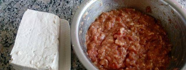 肉末300克、南豆腐(Southern)、雞蛋2個、醬油1茶匙、蠔油1茶匙、胡椒粉½茶匙、鹽切碎、糖半茶匙、薑切碎、米飯1茶匙葡萄酒、½茶匙黑胡椒、淀粉2湯匙