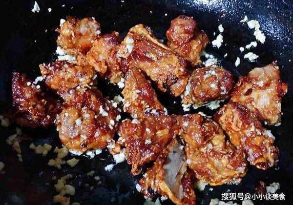 10.放入排骨均勻撒上蒜蓉即可上桌